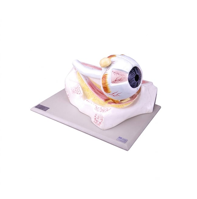 Tamaño aumentado 8 veces, desarmable en 6 partes, muestra el globo ocular con los músculos