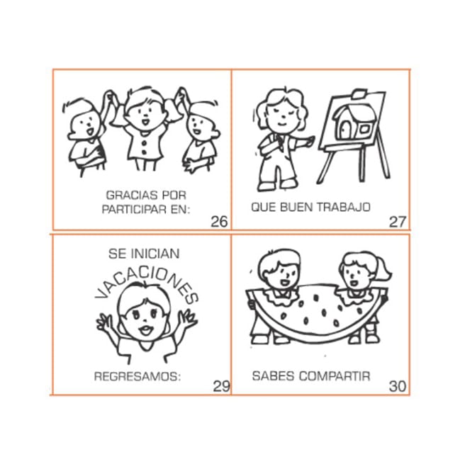 Con esta herramienta didáctica se FORTALECEN CONCEPTOS BÁSICOS Y SE OPTIMIZA EL TIEMPO; los sellos son intercambiables y para todas las áreas, son de diferentes tamaños; con texto e ilustraciones, especifica nombre y cantidad, actividad a realizar y objetivos según el tema; contienen tinta y almohadilla.