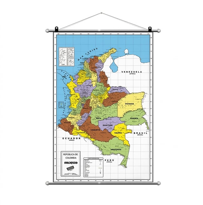 Ayuda visual para ser utilizados por profesores y alumnos, fortalece conceptos de ubicación; los mapas son de COLOMBIA, ANTIOQUIA Y LOS CONTINENTES: FÍSICOS, POLÍTICOS Y MUDOS en hule y propalcote 150 gr. Plastificados y envarillados; los globos terráqueos son elaborados en materiales de alta resistencia.