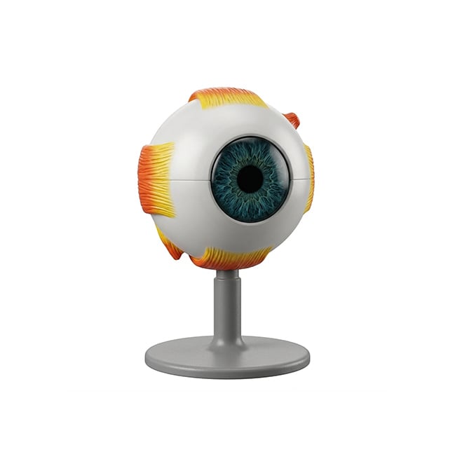 Tamaño aumentado 8 veces, desarmable en 6 partes, muestra el globo ocular con los músculos