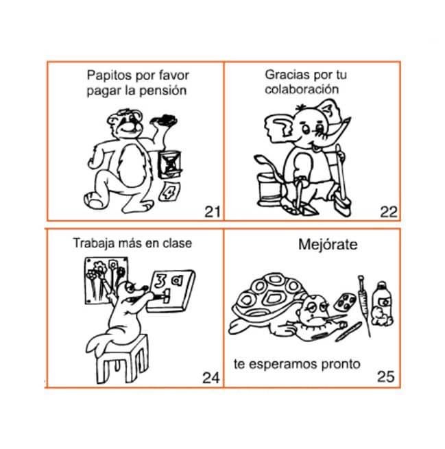 Con esta herramienta didáctica se FORTALECEN CONCEPTOS BÁSICOS Y SE OPTIMIZA EL TIEMPO; los sellos son intercambiables y para todas las áreas, son de diferentes tamaños; con texto e ilustraciones, especifica nombre y cantidad, actividad a realizar y objetivos según el tema; contienen tinta y almohadilla.